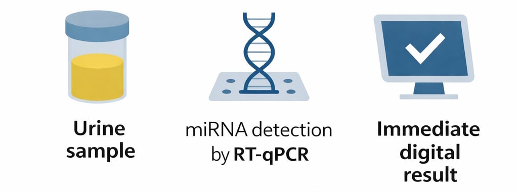 miRNA Analysis: Urine samples are analyzed in a laboratory using real-time polymerase chain reaction (qPCR). This technique enables the precise quantification of specific miRNAs.